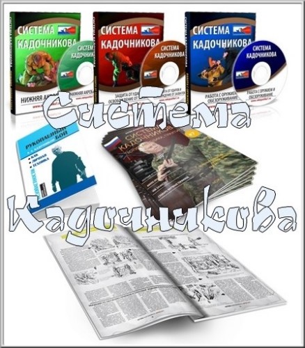 3 DVD-фильма с учебными материалами, книга "Рукопашный бой как личная техника безопасности" и журналы "Система Кадочникова: теория, методика, практика"